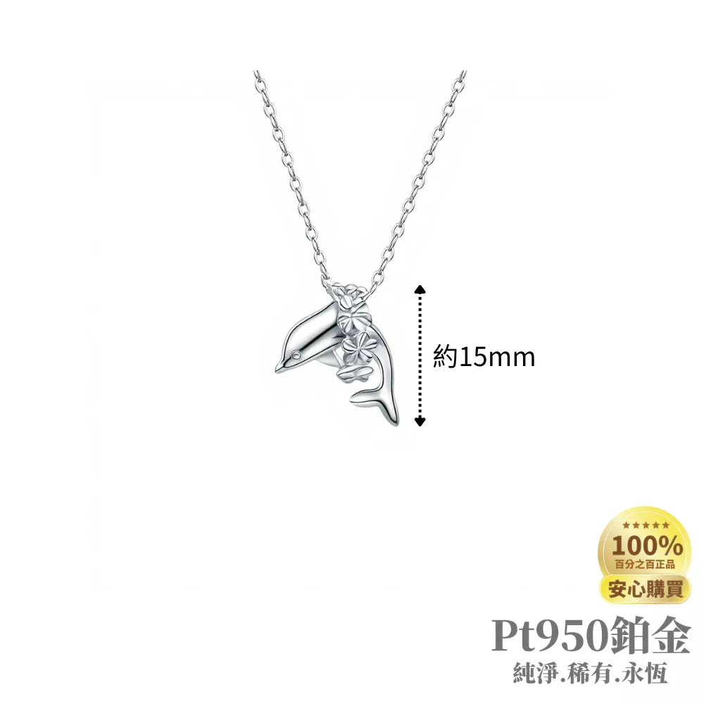 世紀白金 Pt950鉑金吊墜 海豚之戀 幸運草花朵 白金項鍊 氣質鎖骨鍊 送女友禮物